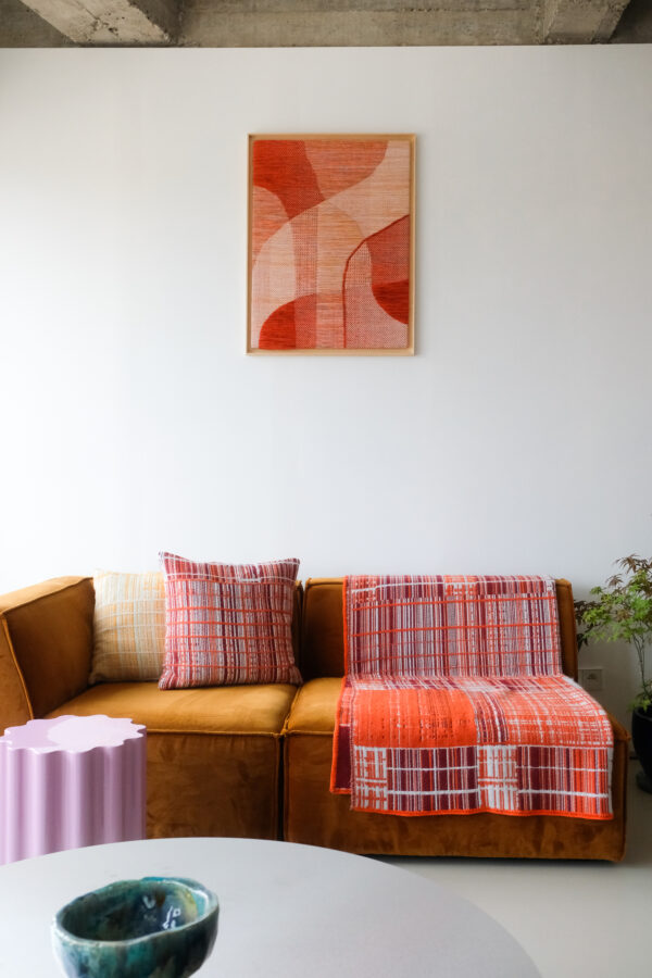 Beyond Bold presents a series of plaids and pillows in Emma’s signature bold and vivid graphic patterns, transformed into tangible textures and textile pieces.